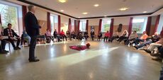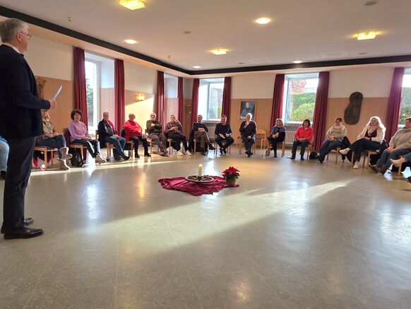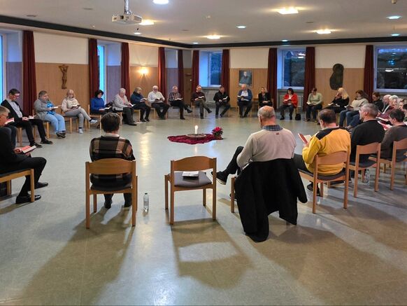 Mitglieder des Verwaltungsrates, Pfarreirates und der Kirchenteams der Pfarrei St. Raphael haben sich zu einem Geistlichen Wochenende getroffen. Mit 31 Teilnehmern war es keine kleine Zahl, die sich eine Auszeit vom Alltag genommen hat. Die Tage haben Raum für Besinnung, Begegnung, Austausch und Stille geboten. Das Kloster in Hünfeld war ein guter Ort dafür und P. Karlheinz Vogt OMI hat es verstanden, der Gruppe Impulse zu geben und sie zu tiefem Austausch zu führen. Der Wunsch am Ende des Wochenendes nach einem weiteren im nächsten Jahr, zeigt, dass es den Teilnehmern gefallen und vor allem gut getan hat.